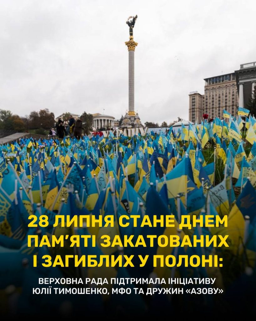 28 липня стане Днем памʼяті закатованих і загиблих у полоні: Верховна Рада підтримала ініціативу Юлії Тимошенко, МФО та дружин «Азову»